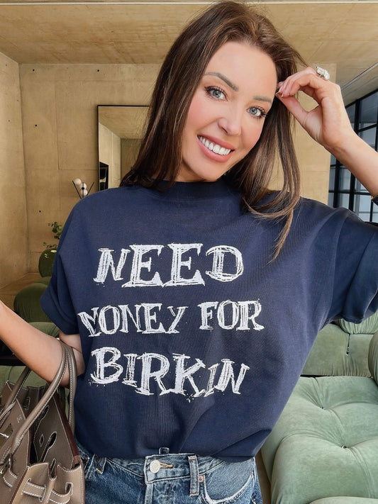 Sold out'NMFB' SLOGAN OVERSIZED T-SHIRT NAVY