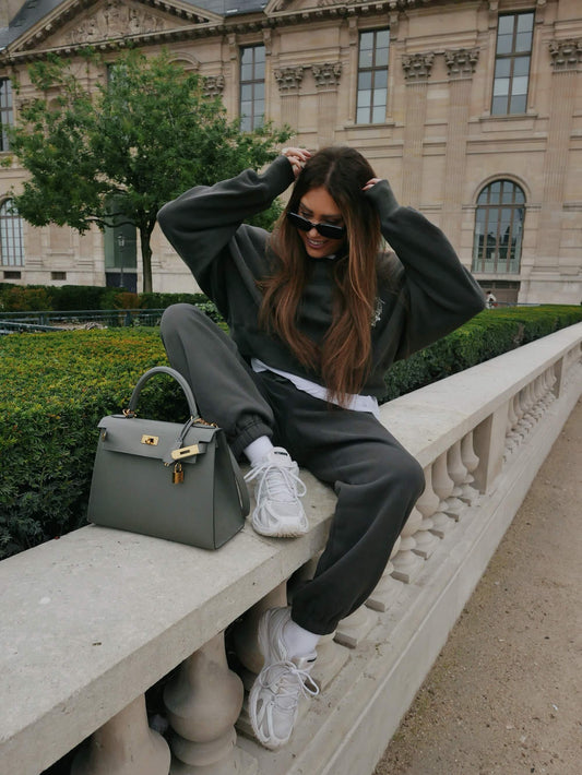 'UNIVERSITE' CROPPED OVERSIZED SWEATSHIRT SLATE GREY