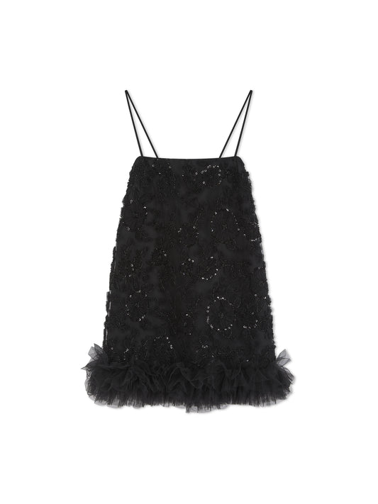 'FROU-FROU' EMBELLISHED SQUARE NECK MINI SLIP DRESS BLACK