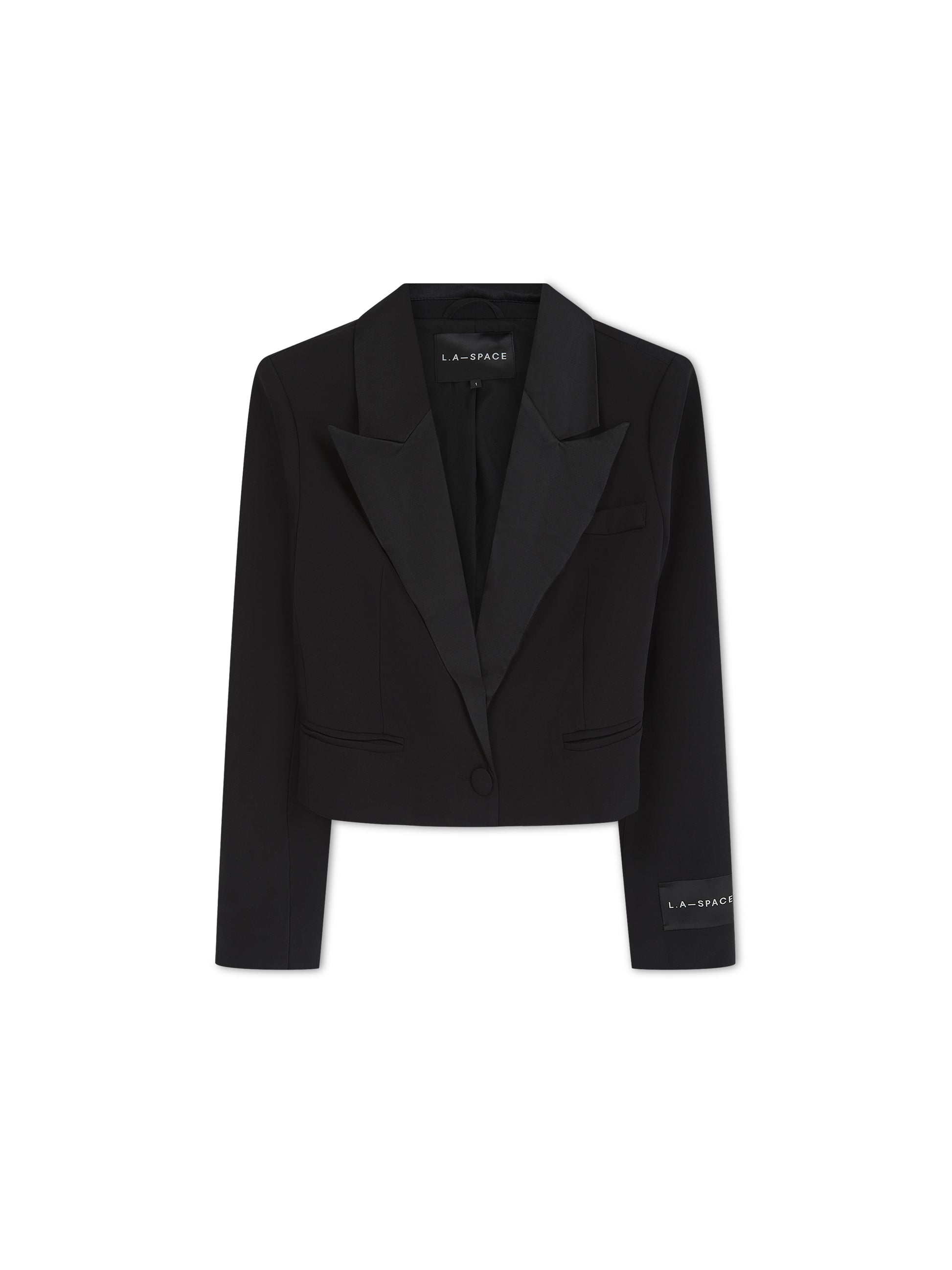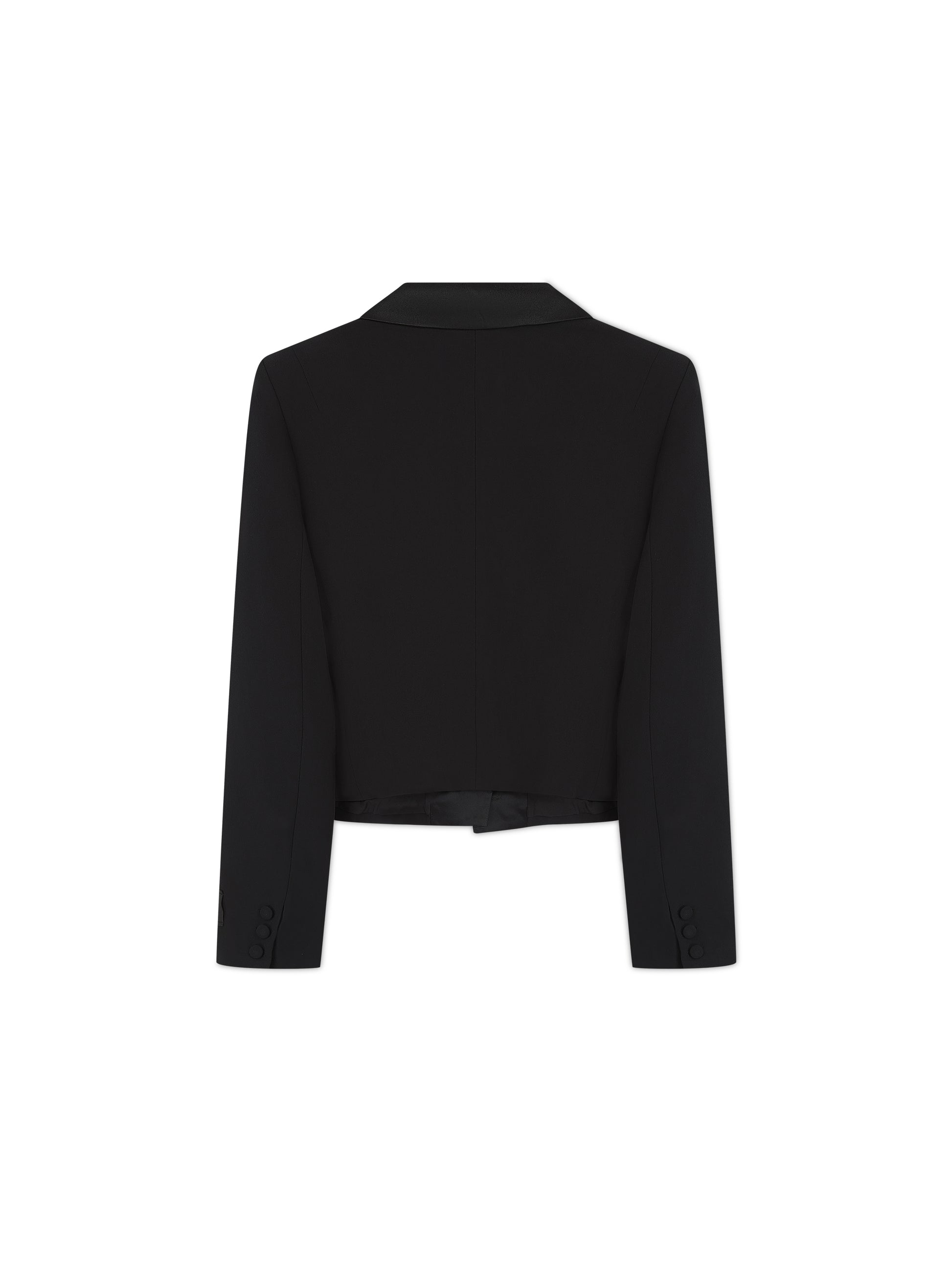 'HARLOW' CROPPED TUXEDO BLAZER BLACK