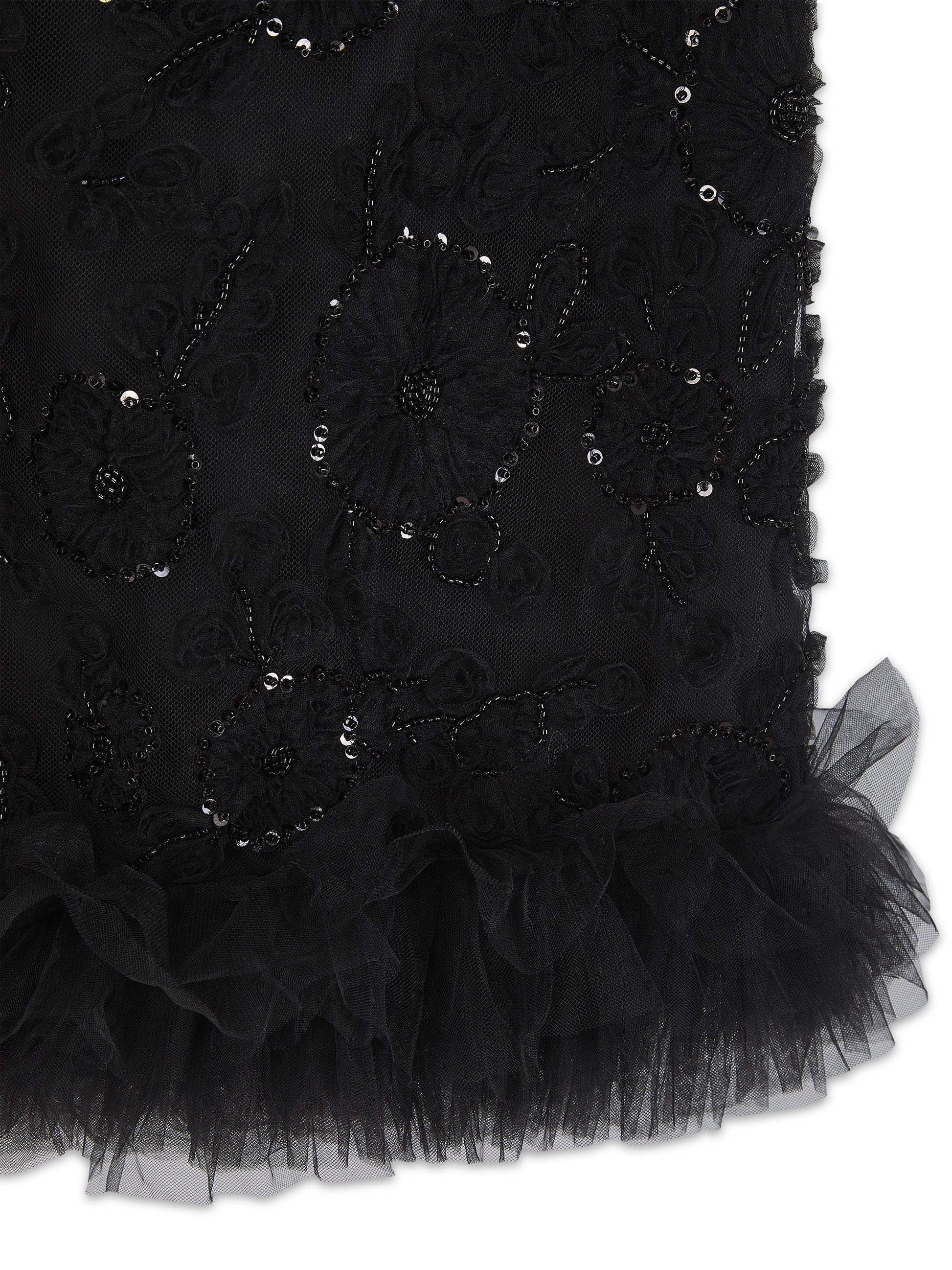 'FROU-FROU' EMBELLISHED SQUARE NECK MINI SLIP DRESS BLACK