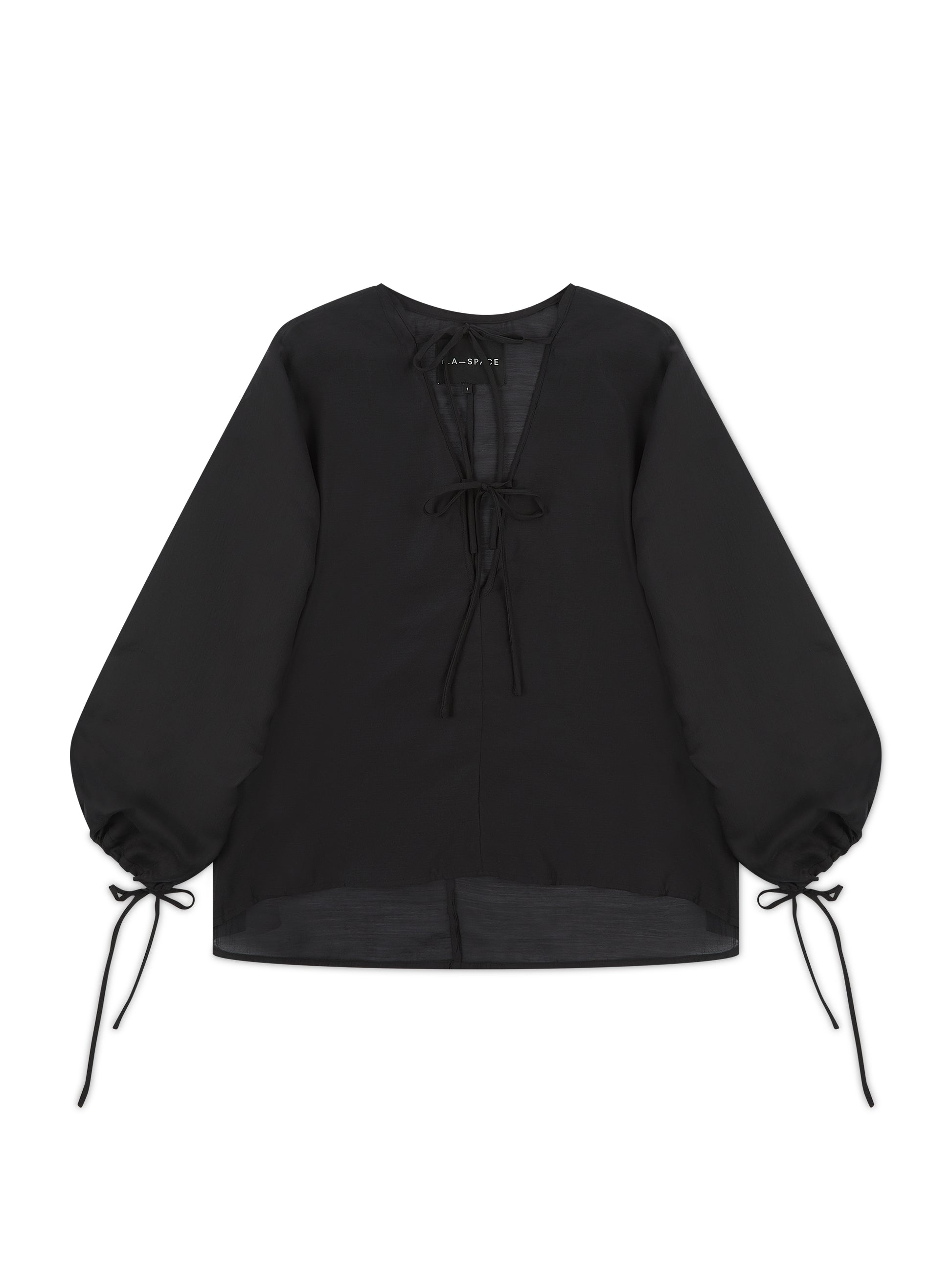 'GIGI' EXAGGERATED BALLOON SLEEVE CHIFFON BLOUSE BLACK