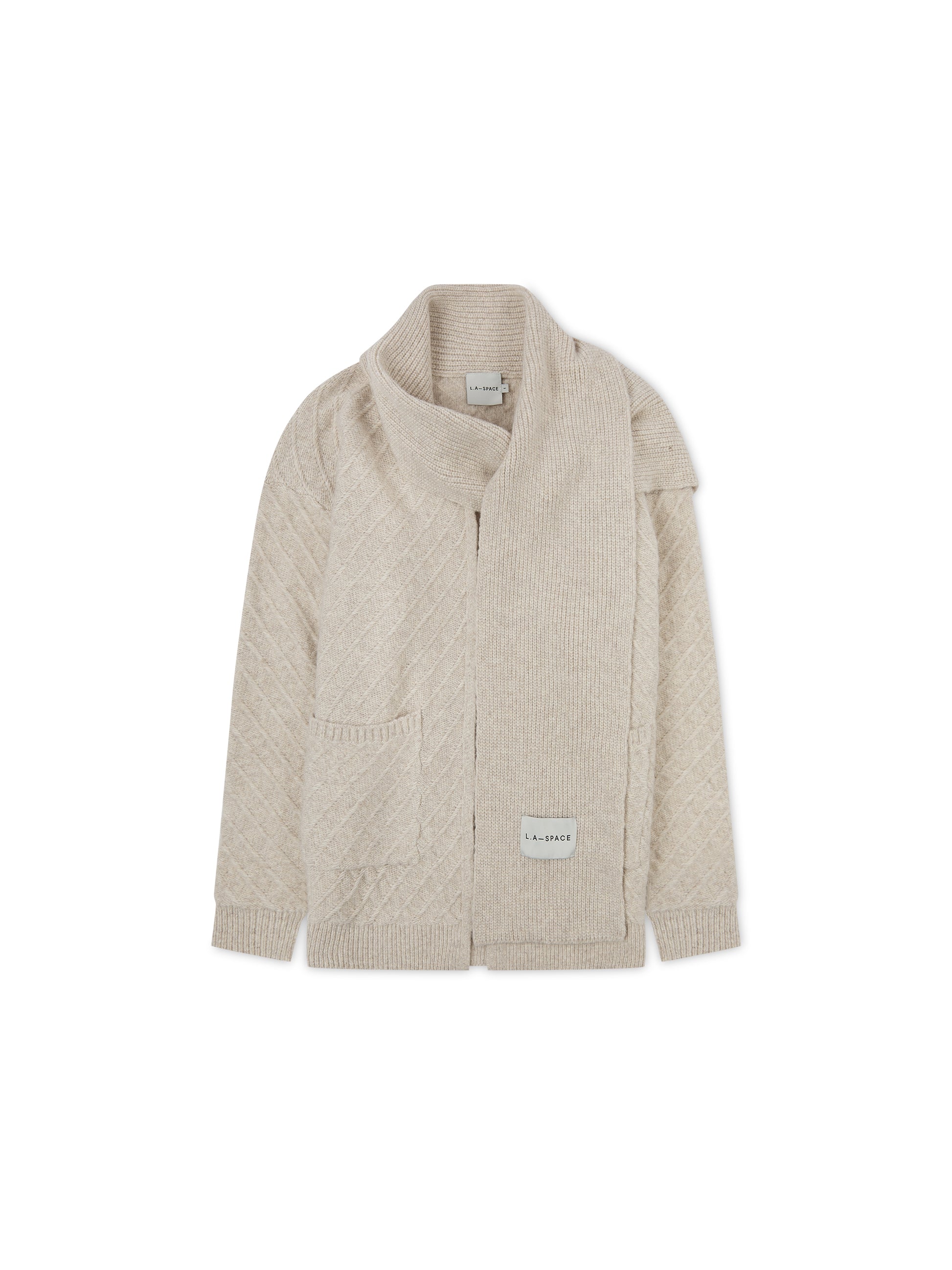 'CAMILLE' KNITTED CARDIGAN WITH SCARF DETAIL BEIGE