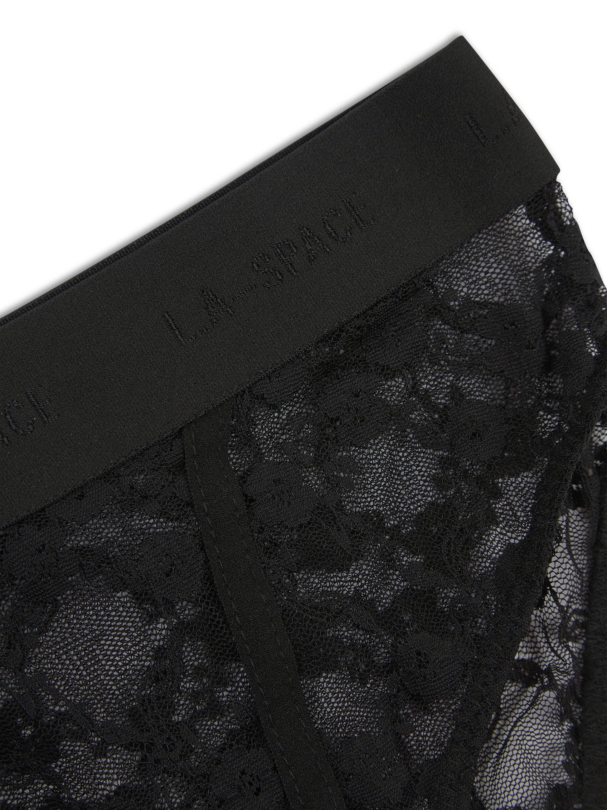 'MONROE' L.A-SPACE LACE HIGH LEG BRIEF BLACK