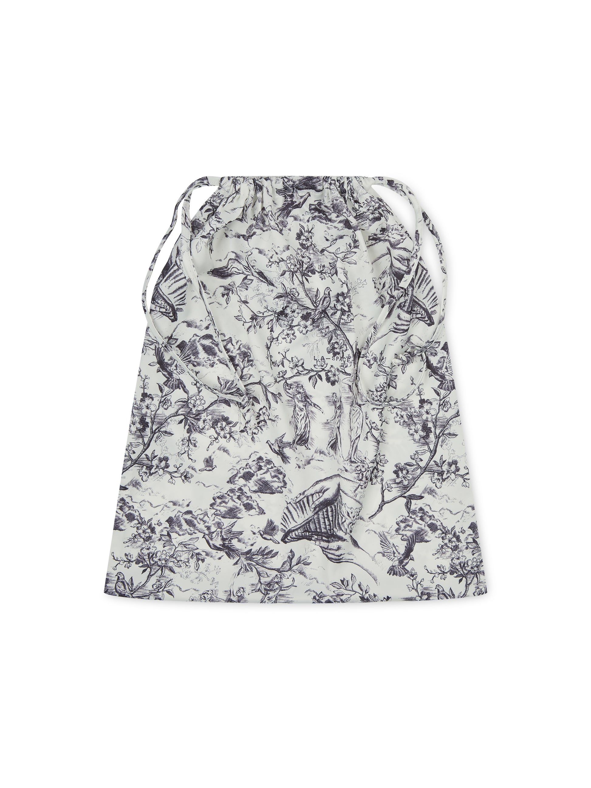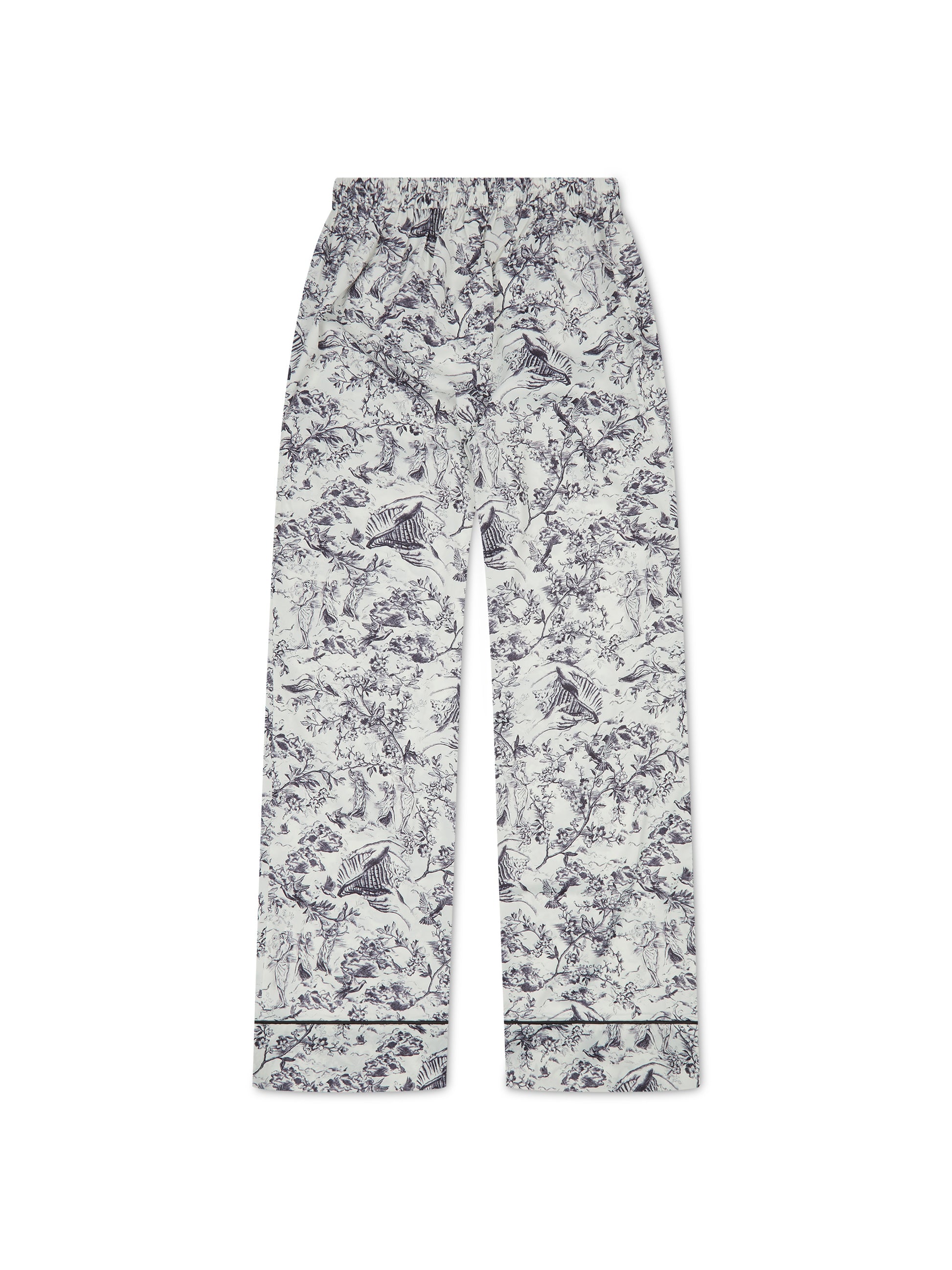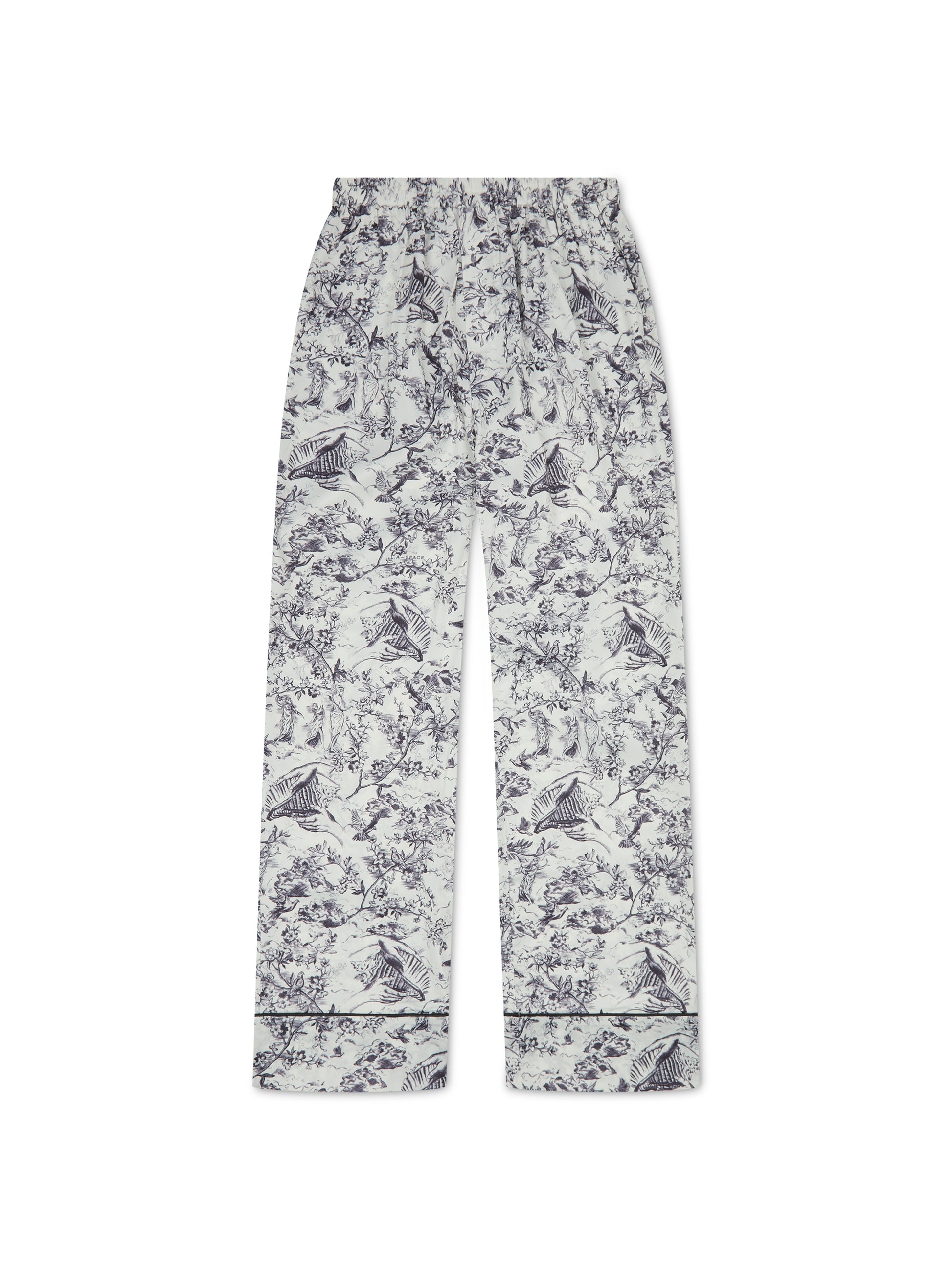 Our classic signature toile print pyjama set redefines bedtime luxury. This 5-piece set includes a stylish double-breasted sleep shirt, wide-leg trousers, a soft eye mask, a matching scrunchie, and a dust bag. Perfect for gifting or personal pampering.