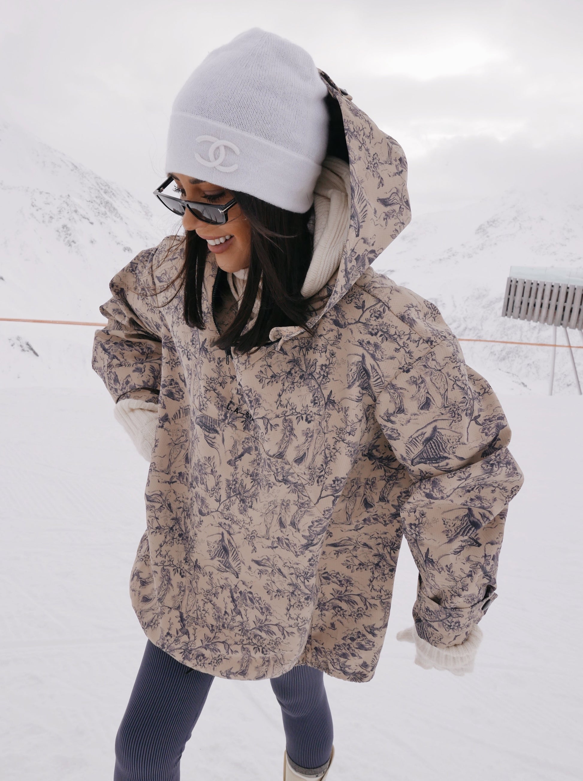 An elevated take on a streetwear classic. Our L.A-S anorak is an oversized fit that features our all over signature toile print, and embroidered branding on the chest. Complete with design benefits such as a drawstring hood, ¾ zipped neckline, hidden elasticated cuffs and stud press epaulettes to the outer cuff, a kangaroo pocket, and an adjustable drawstring hem. A perfect piece to compliment any casual attire this season. Style with our 'Baxter Rib Knitted Logo High Waisted Leggings Navy’ for an elevated ‘on the go’ look.