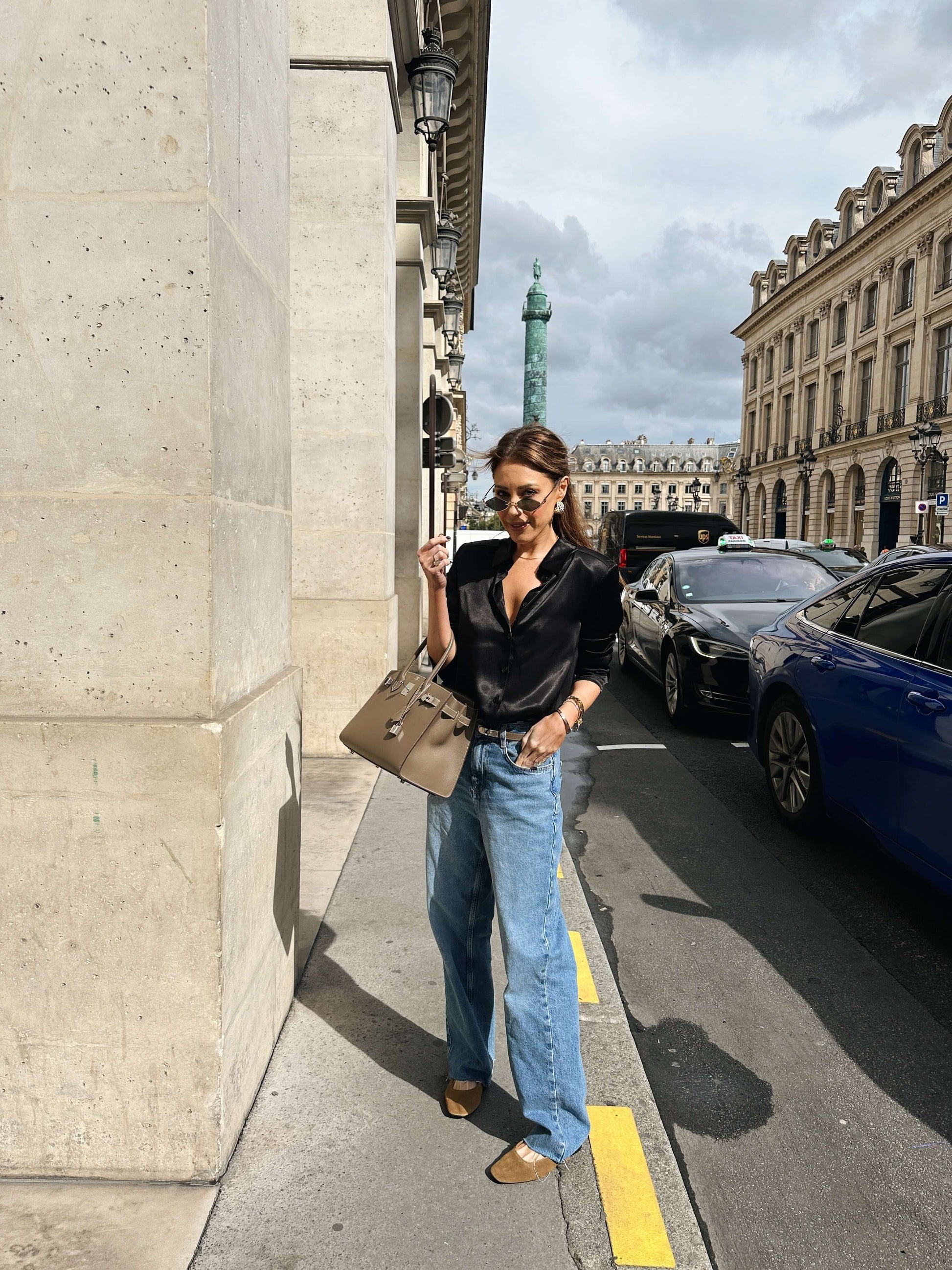 Introducing our brand-new perfect fit blouse. A fluid fit with a button front closure, subtle shoulder pads for exaggerated proportions, and a deep cuff for extra drama.