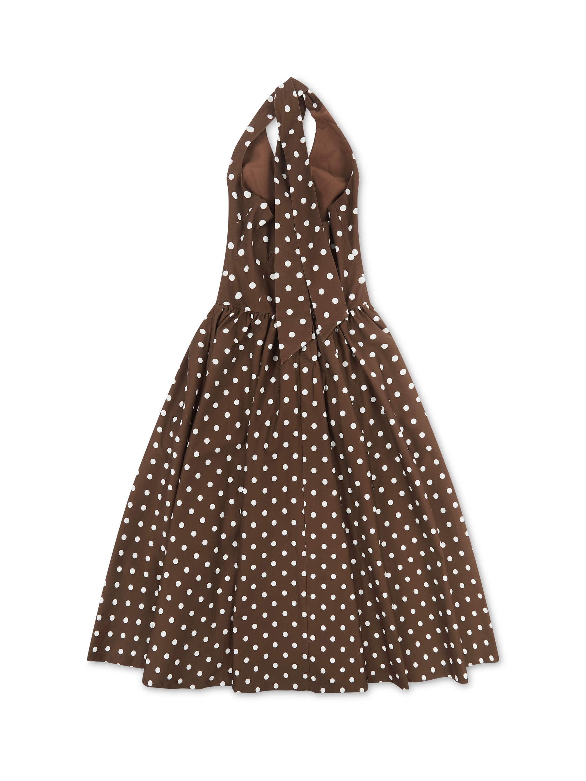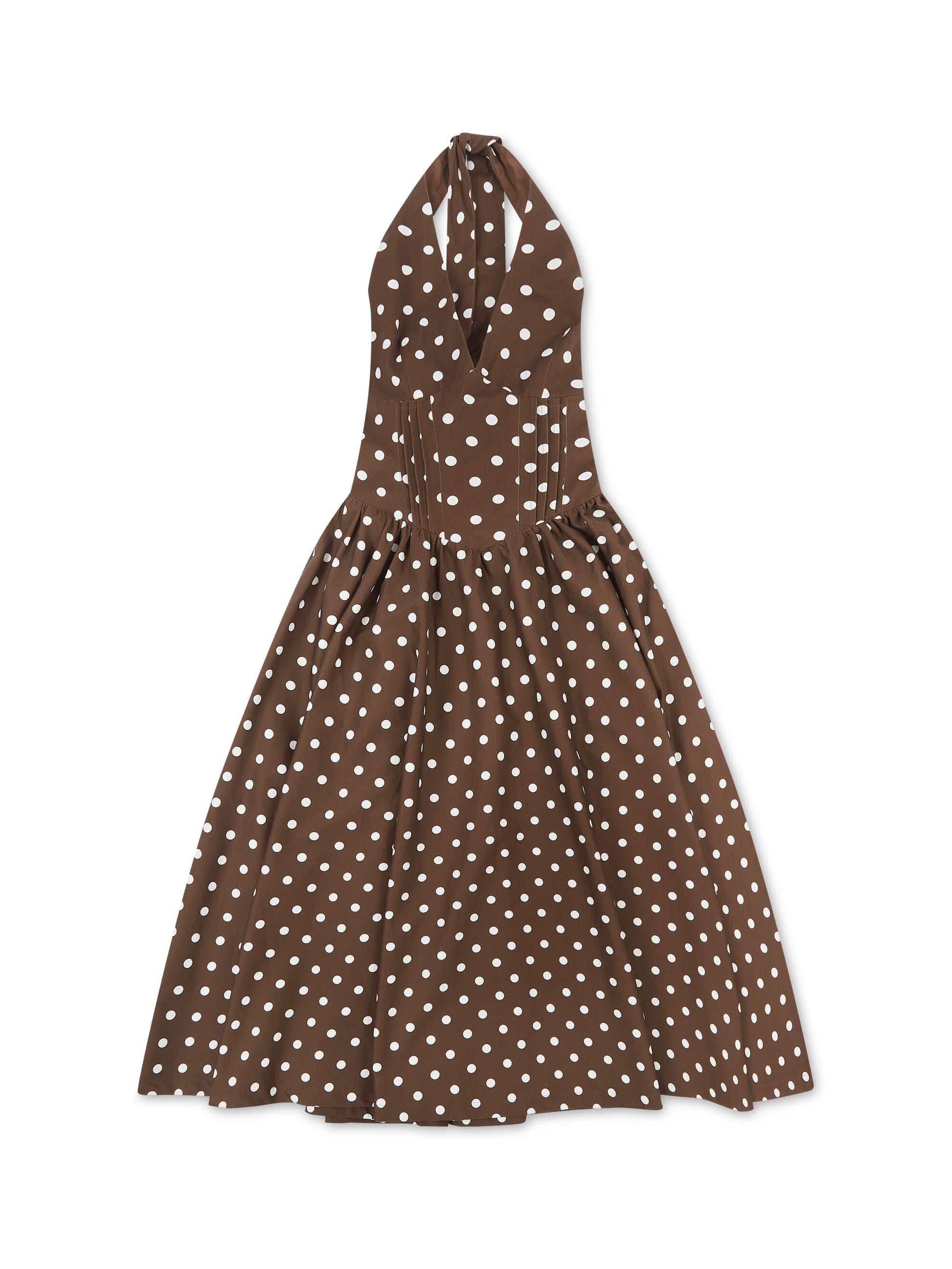 'PRETTY WOMAN' POLKA DOT HALTER NECK CORSET MIDI DRESS BROWN