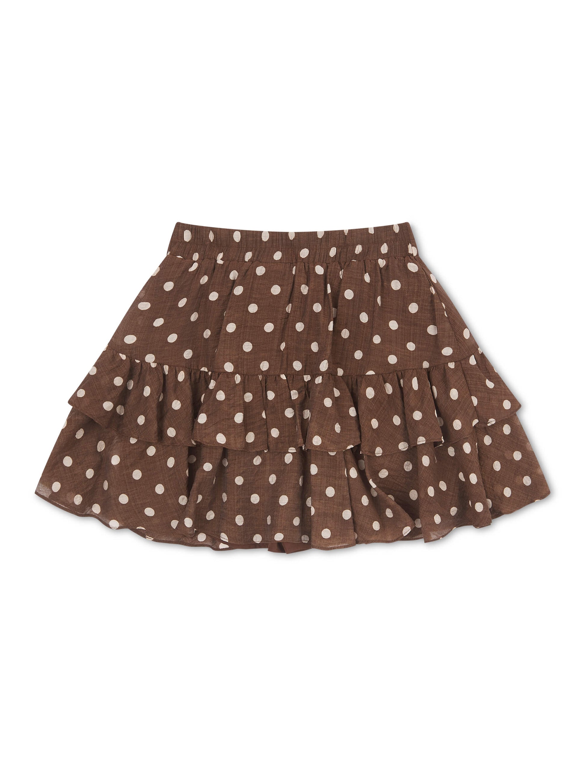'VIVIAN' POLKA DOT TIERED RUFFLE SKORT BROWN