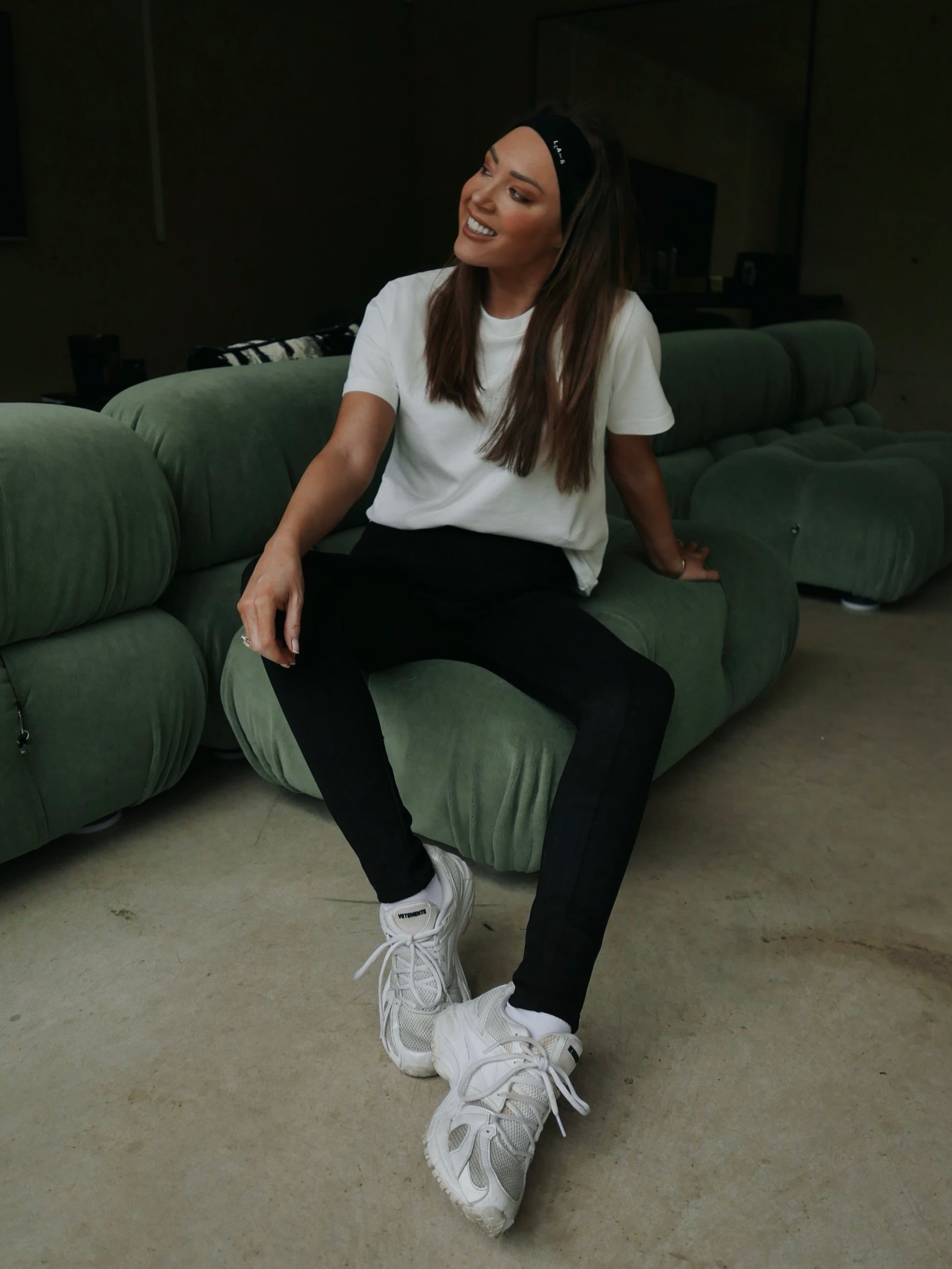 Introducing our brand-new high rise suedette contouring leggings. Our skinny silhouette leggings include a deep engineered waistband with sculpt control around the stomach, and straddle stitching down the centre of each leg. A timeless piece for a capsule wardrobe.