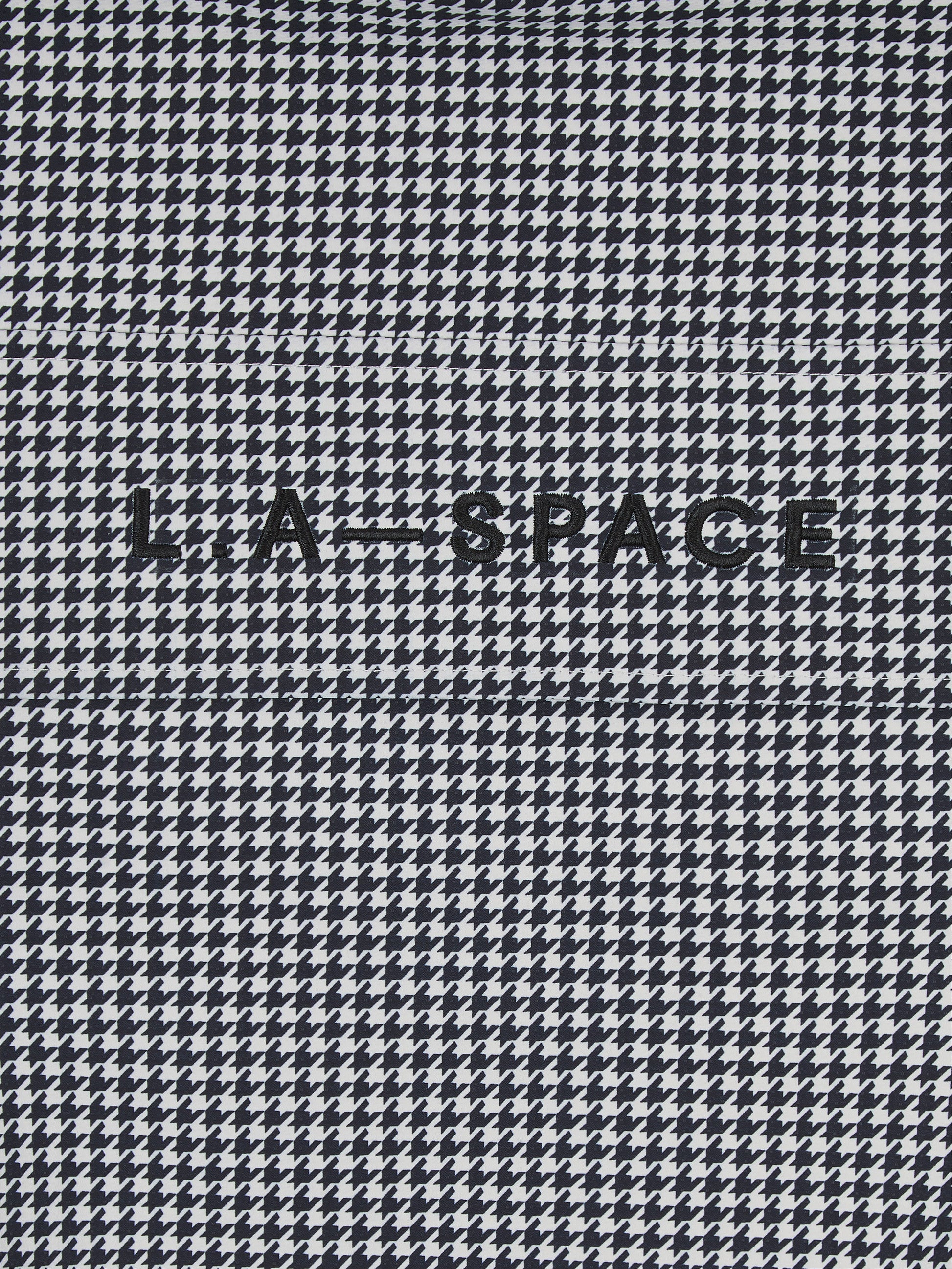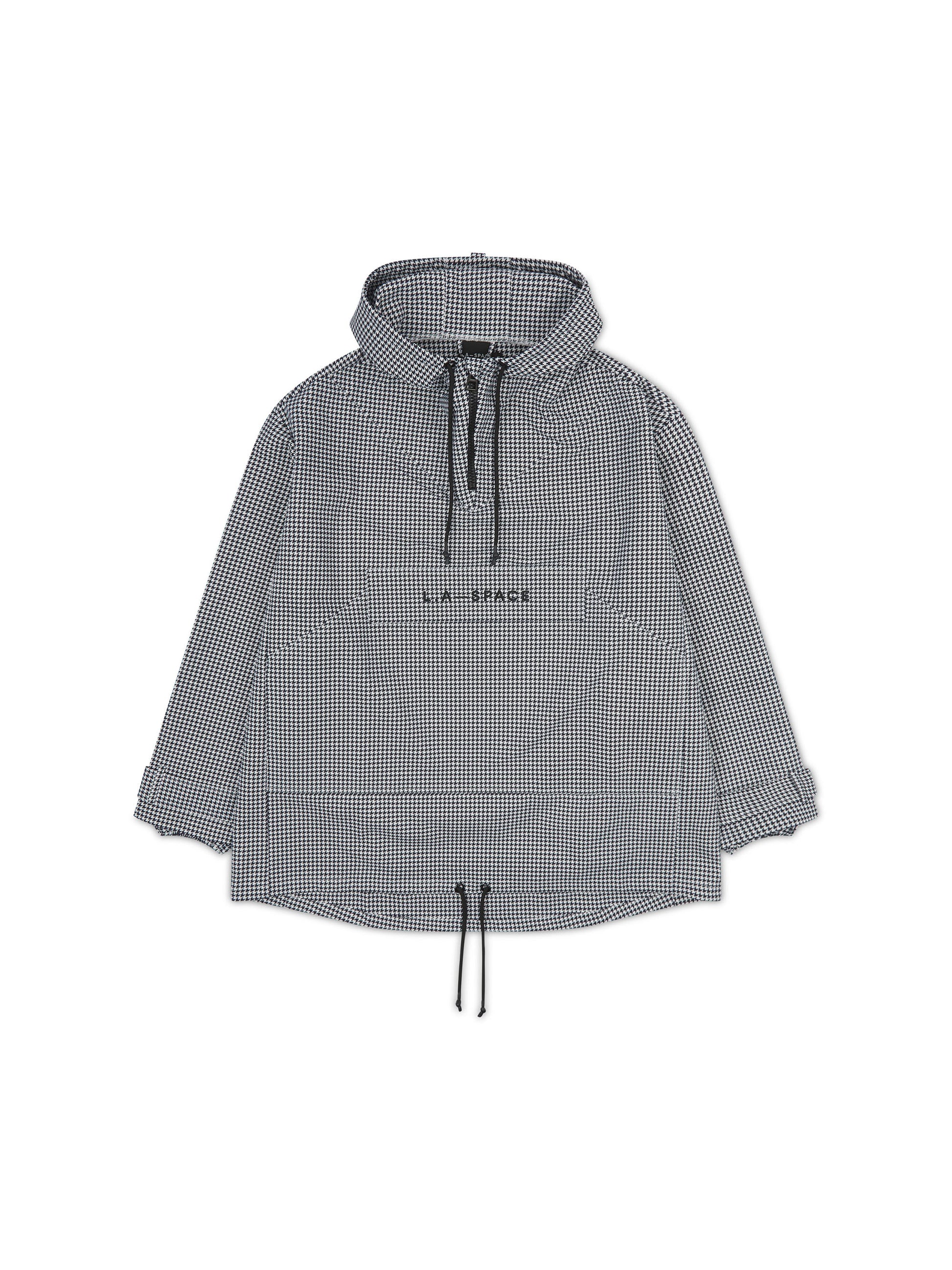 An elevated take on a streetwear classic. Our L.A-S anorak is an oversized fit that features our all over houndstooth print, and embroidered branding on the front pocket flap.